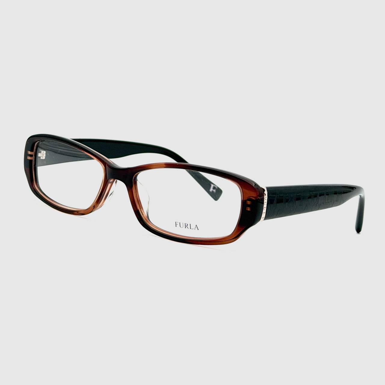 عینک طبی Furla VU 4806J با فریم ظریف استات، انتخابی ایدهآل برای خانمها؛ مناسب مطالعه و اصلاح نزدیکبینی با طراحی سبک و شیک.
